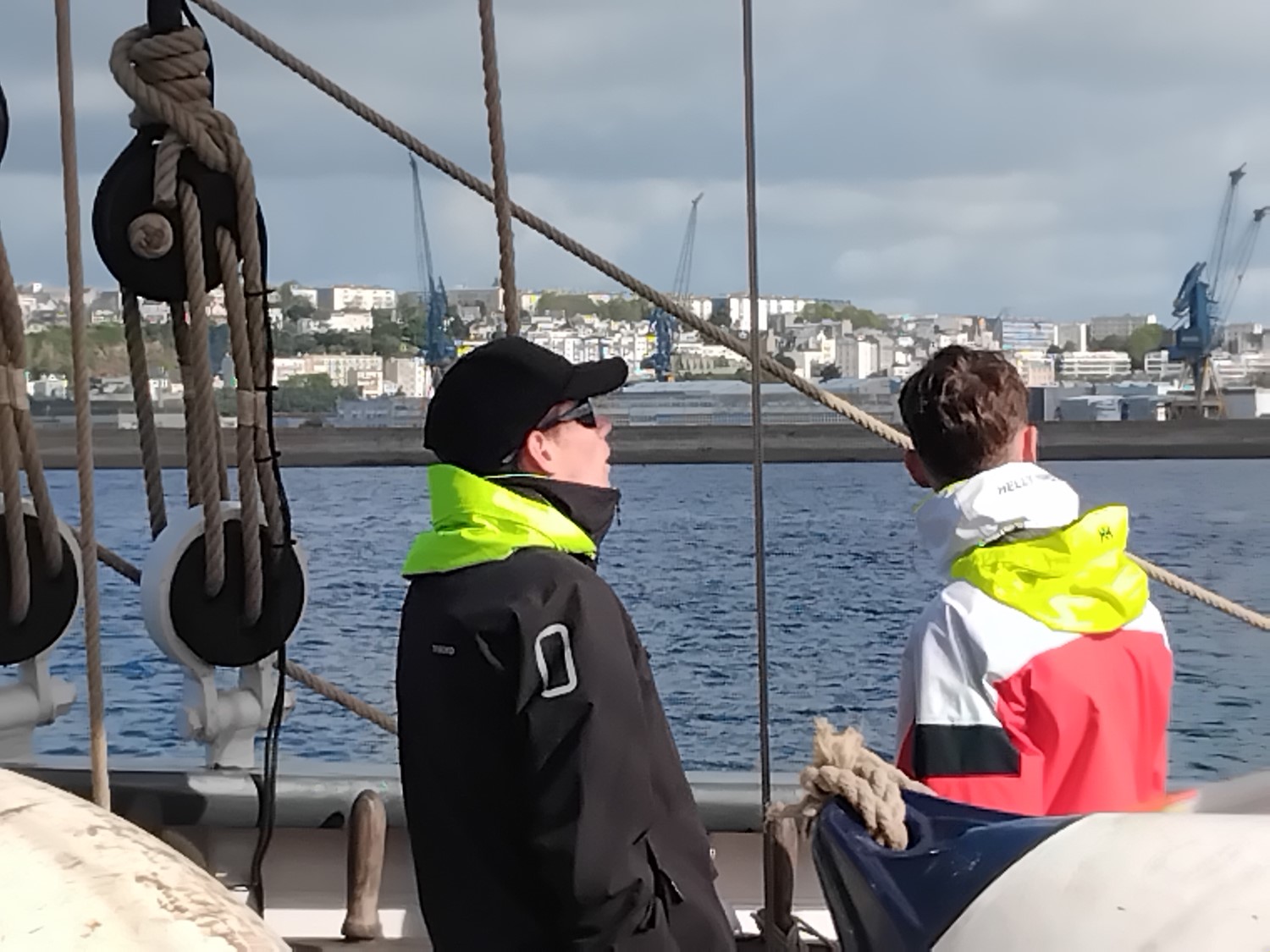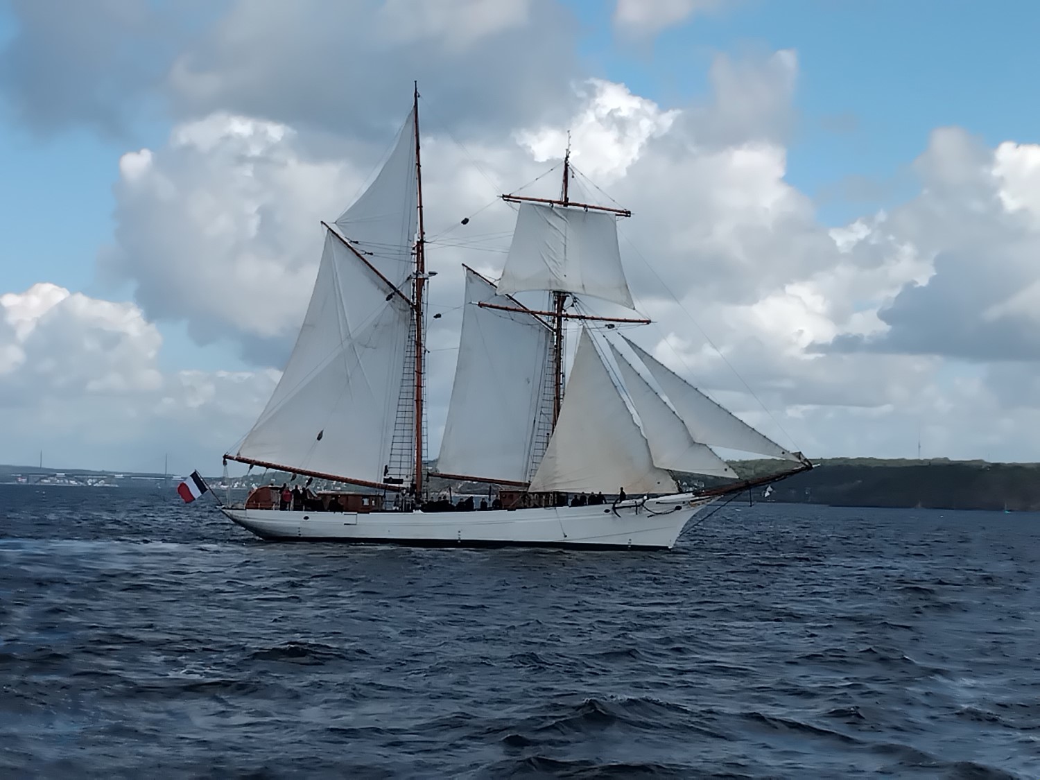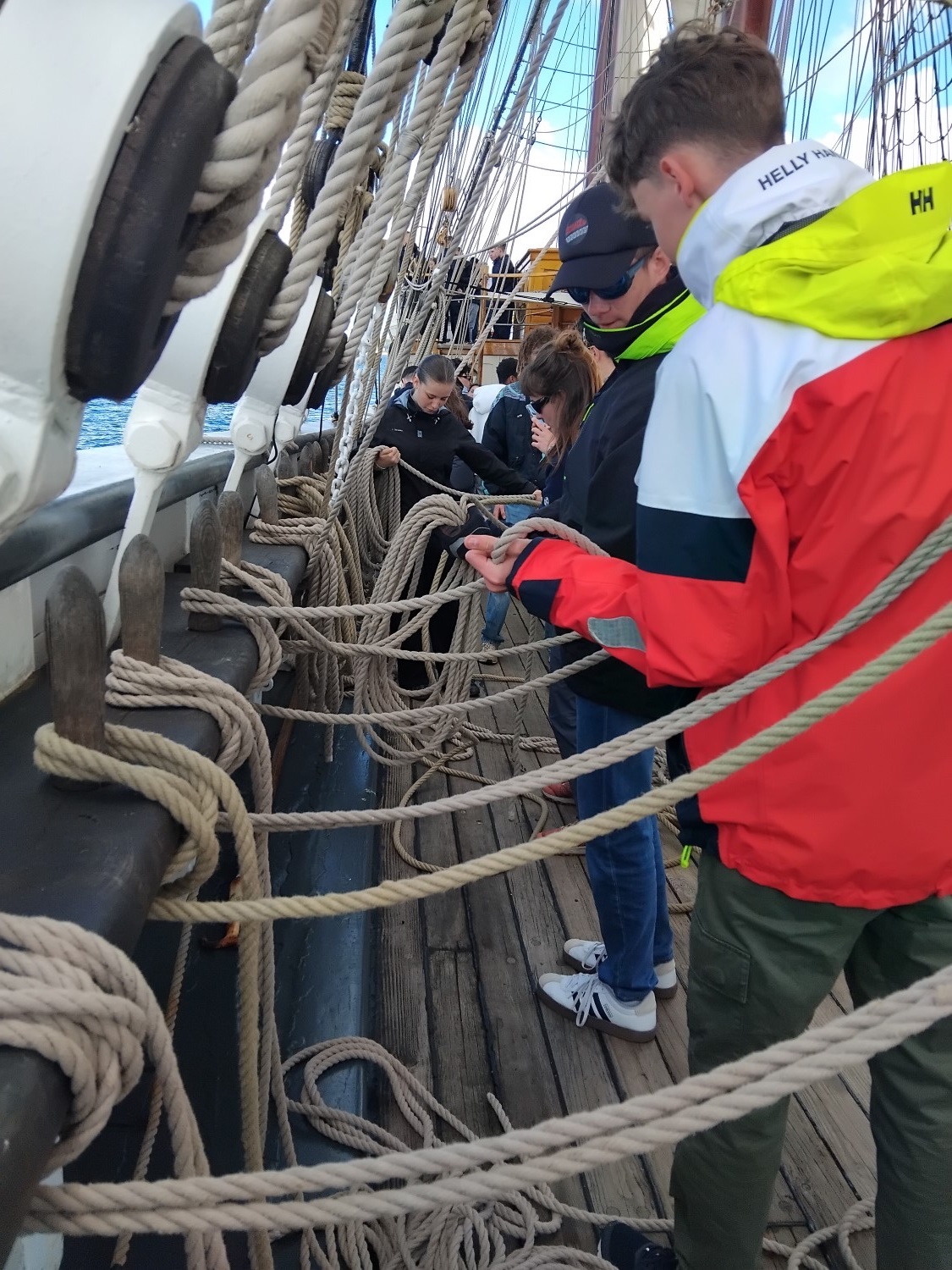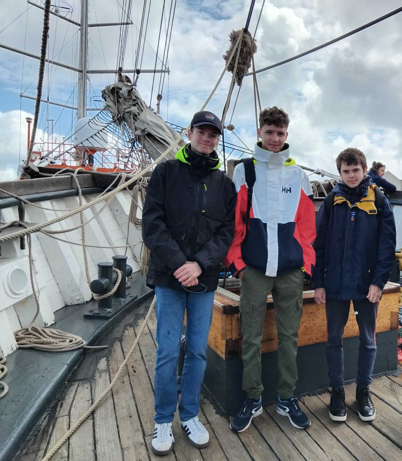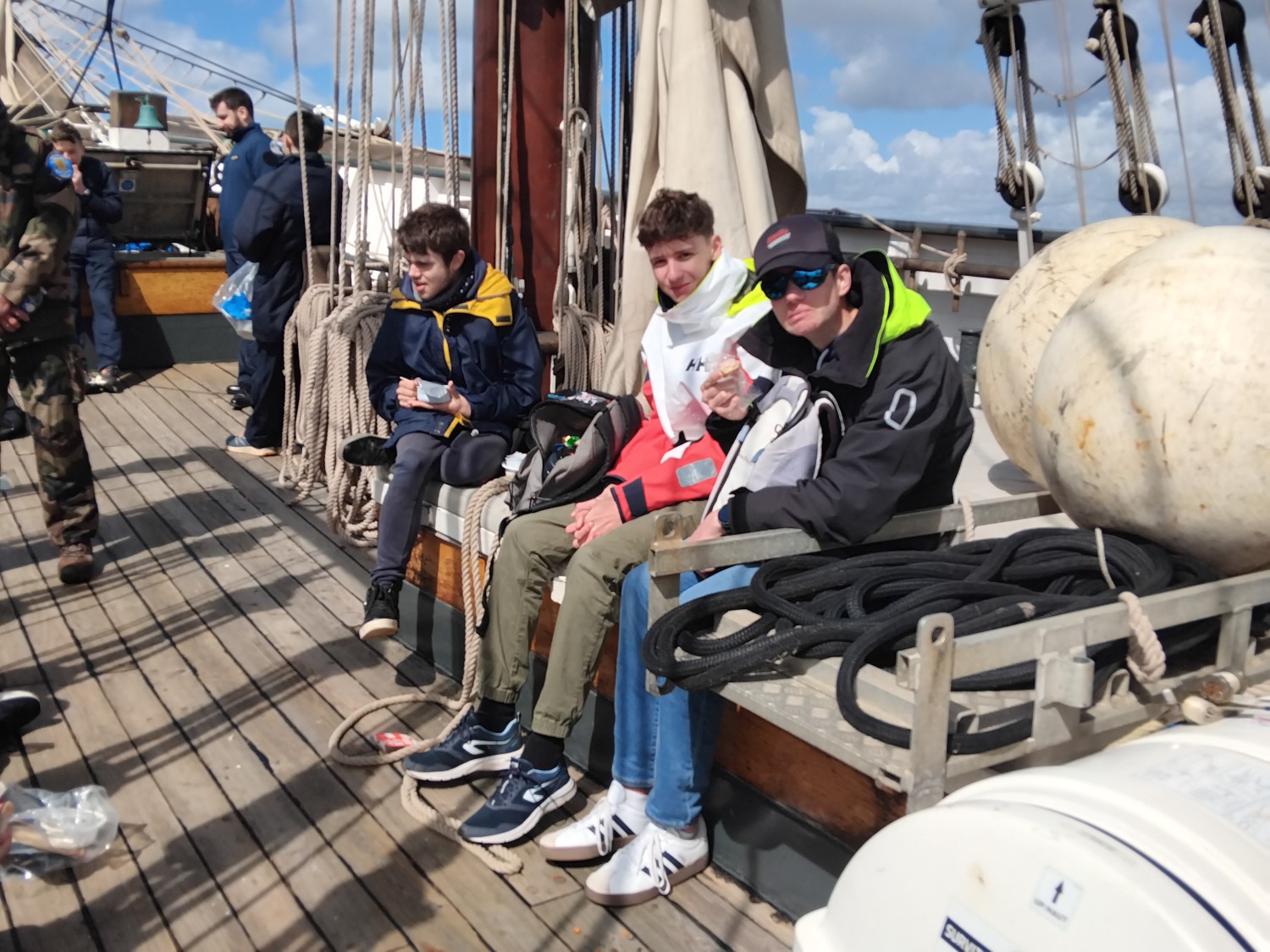 Le 22 avril 2025, après un briefing sécurité par le capitaine du trois mâts barque « Le Français » et la répartition des équipiers aux différents postes de manœuvre, les amarres sont larguées du quai Malbert du port de Brest. Le vent est orienté Sud Ouest. La matinée est ensoleillée. C’est parti pour une belle navigation dans la rade de Brest. Louis, Gabriel est Ryan sont équipiers foc. « Tout le monde est paré, à mon commandement, hissé le grand foc ! ». Nous sortons du port. Toutes voiles dehors, nous prenons le cap 155° direction La pointe de Lanvéoc sur la presqu’île de Crozon. Nous faisons un long bord de pré et passons devant l’île longue où se trouve la base des SNLE (Sous-marins Nucléaires Lanceurs d’Engins). Les écoutes sont choquées. Les voiles sont affalées et nous jetons l’ancre à 5.5 milles nautiques soit 10 km de notre point de départ. C’est le moment du déjeuner. Nous en profitons pour échanger avec les jeunes de la Préparation Militaire Marine de Versailles. Le retour est l’occasion de faire deux virements de bord « lof pour lof ». Nous croisons l’Etoile : navire de la Marine Nationale. « Ce fût un moment exceptionnel » confit Gabriel en fin de journée. « Que l’on fera probablement qu’une seule fois dans sa vie » révèle Ryan.