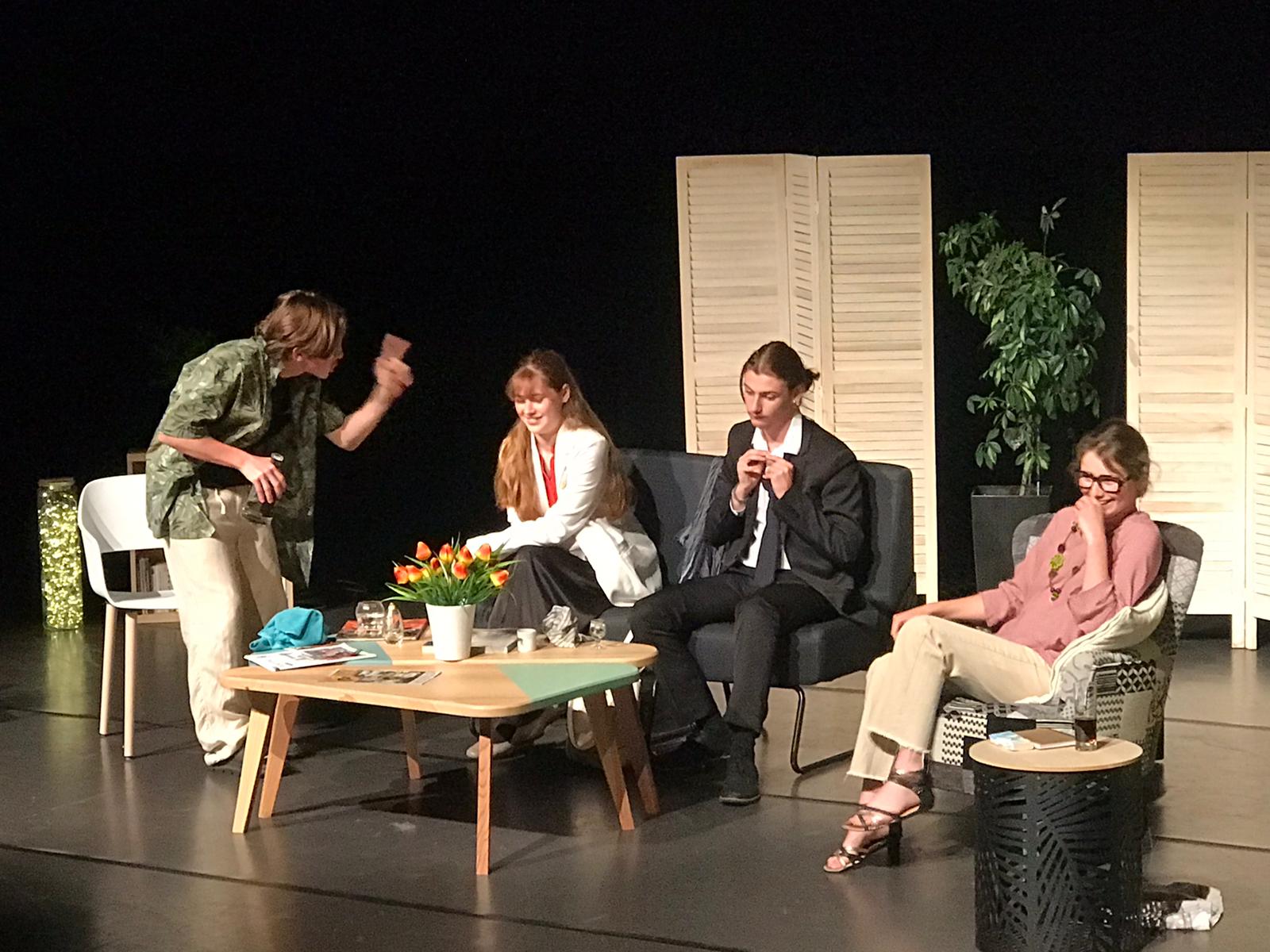 Une belle année avec les 13 élèves de seconde de l’atelier Théatre. Une interprétation de grande qualité par les élèves de la pièce intitulée le Dieu du carnage de Yasmina Reza a eu lieu mercredi 21 mai. Le public nombreux a passé un agréable moment dans la salle de l’Écusson de Josselin où les rires étaient au rendez-vous. Mme Carrer et Mme Mézanges sont fières du travail accompli par les élèves. BRAVO.