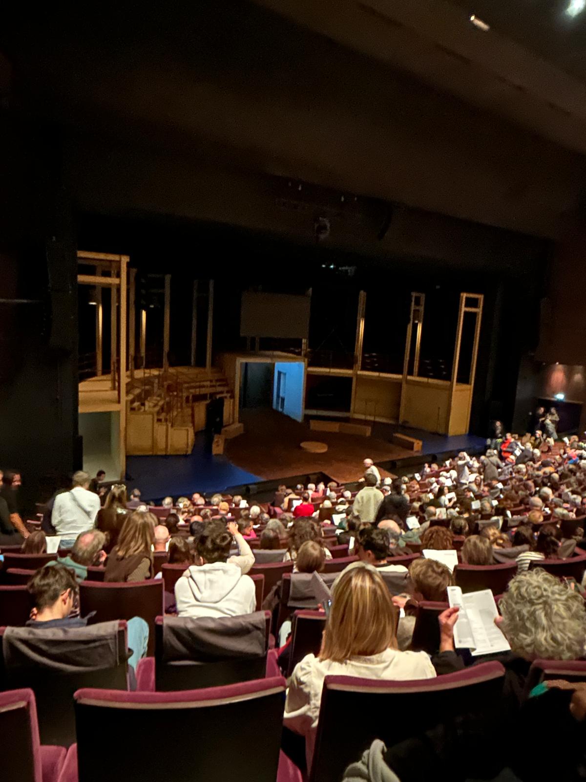 Une nouveauté dans le parcours culturel et artistique des élèves du lycée Mona Ozouf avec « l’Ecole du spectateur » qui propose quatre soirées au théâtre lors de spectacles tout public. Le mardi 18 novembre, 56 élèves volontaires ont assisté à la représentation de Bovary Madame mis en scène par C. Honoré au TNB (Théâtre National de Bretagne) à Rennes. L’interaction avec le public que propose la pièce a permis à deux de nos élèves de monter quelques minutes sur scène et de voir, aux côtés de comédiens, l’impressionnante salle Vilar remplie de spectateurs. Quelle expérience ! Devenir spectateur, enrichir sa culture, réfléchir aux thématiques abordées sont autant d’objectifs visés. les élèves et personnels présents ont partagé un agréable moment culturel qui sera renouvelé dès le 15 janvier prochain.